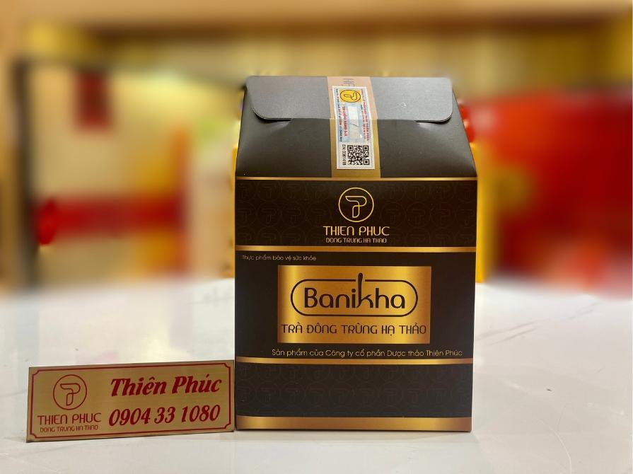 Trà đông trùng hạ thảo Banikha được phát triển bởi Công ty Dược Thảo Thiên Phúc – đơn vị tiên phong trong việc nuôi trồng thành công đông trùng hạ thảo tại Việt Nam. Sản phẩm là sự kết hợp của các thành phần thảo dược tự nhiên, mang đến lựa chọn trà bổ dưỡng, tiện lợi, và an toàn cho người sử dụng.